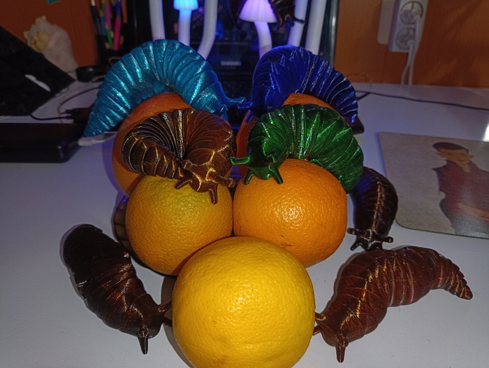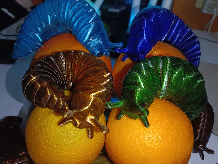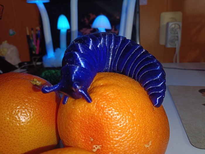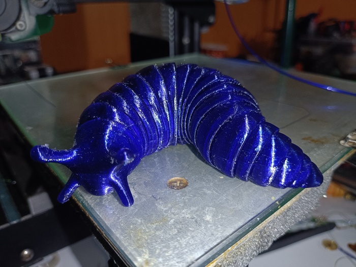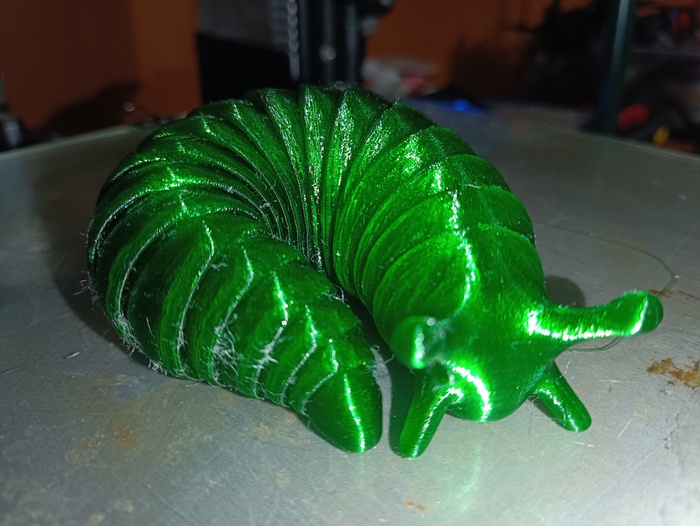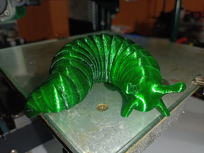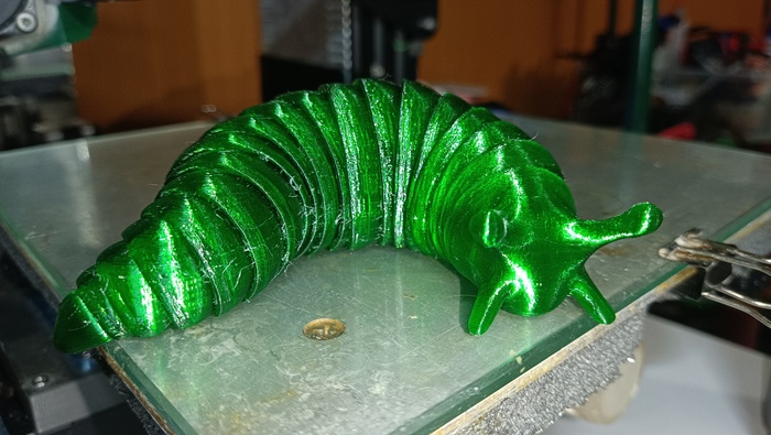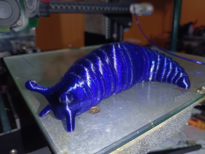 Привет, сделал мокрицу(слизня) из пластика бутылок энергетика которые я сам перерабатываю и печатаю им на 3д принтере.