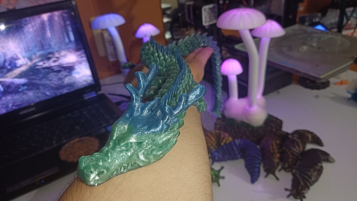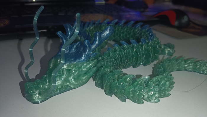 Привет, переработал на своëм самодельном станке бутылки Боржоми( попалась партия на мусорке) и напечатал из них дракона.