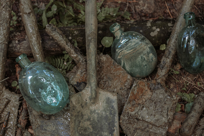 Укрытые землёй и водой остатки личных вещей тех, кто некогда защищал Москву холодной зимой 1941 года.