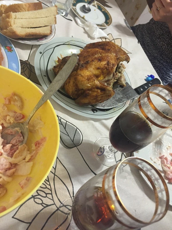 Ну и собственно, пару фоток "в процессе" - тут извиняюсь за фото пустых тарелок и бокалов, просто салаты, курицу и печеный хлеб не успел сфоткать до того, как собрались :(