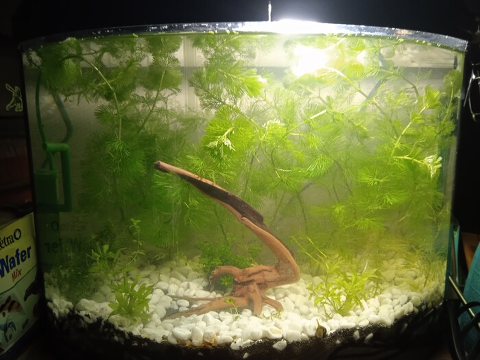 У меня разрослось растение в основной акве ( название не помню, что-то, вроде, на Х ( фото ниже будет), да так, что оно очень некрасиво смотрится в новой акве, ибо она пониже).