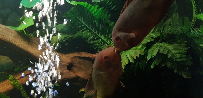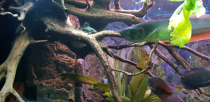 Вместе с ними содержались тернеции и неоны, у которых вдруг появился ихтик и пришлось лечить аквариум касторуром. Как оказалось для них он смертелен...