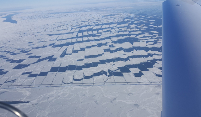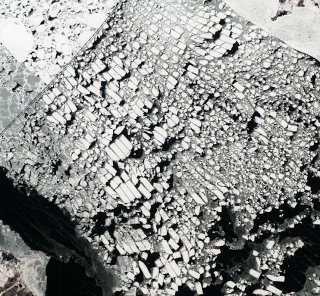 Недавнее спутниковое изображение показывает, как мост разрезает лед
