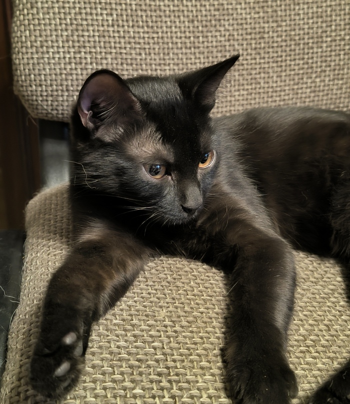 Как-то, пес нашел "мяукающий куст" , там оказалось два котенка: чёрный и рыжий, всего месяц отроду. Так появилась у нас "Герда". Теперь спокойствие нам только снится. Котенку уже 9 мес. Изначально она не умела ходить (только ползала), есть(кормил из шприца) и был гнойный конъюнктивит.