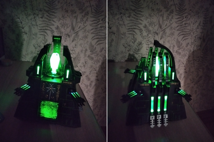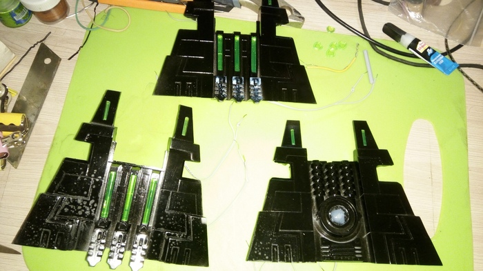 Вот, наконец я и закончил со сборкой Монолита Некронов. В первой части мне дали несколько очень ценных советов, которыми я, конечно пренебрег. Не стал ставить сопротивление и делить группы диодов по их типам (гоните меня и насмехайтесь надо мной). Поменял только источник питания, теперь это две ААА батарейки. Также у меня возникла идея подсветить сопла. Но, это показалось банальным и я добавил микрик, который срабатывает при поднятии Монолита.