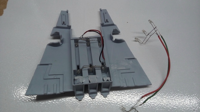 Увы, так как модель неофициальная, все изначально зеленые и прозрачные детали стали просто серыми. Пришлось долго искать им замену, которая подвернулась в магазине с красным логотипом с буквой "5".