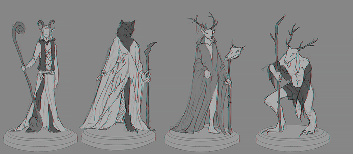 Для тех, кто разбирается в этом жанре, мы изначально старались привнести больше смысла в растановку фигур, потому мы решили сохранить паттерн их движения как в оригинальных шахматах (кроме пешек). Мы начали с дизайна первых 30и базовых фигур. Для примера добавлю парочку концептов:
