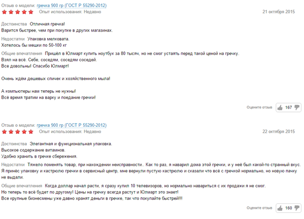 3 paf86 В одном известном магазине электроники стали появляться некоторые продукты питания... 10 лет назад Собственно вот,что из этого вышло...Здесь только самые популярные: Там кстати еще и сахар есть) Но это уже совсем другая история) Удачных покупок)) Показать полностью 3 Гречка Отзыв Юлмарт