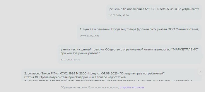 после этого сообщения обращенеие закрыли без возможности снова открыть или оставить дополнительный комментарий