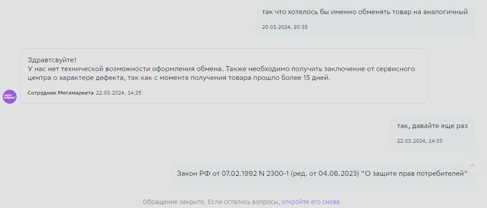 ну мы ж не пальцем деланные ща напишем в мегамаркет, оформим обмен.