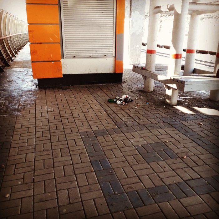 Уважаемые работники ржд. Сегодня,оказавшись на одной из станций ближайшего Подмосковья, я был сильно разачарован.В это прекрасное,солнечное,весеннее утро, при попытке сеть на лавочку, я увидел это: