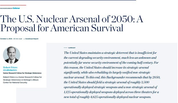 Публикация Heritage Foundation, чьи аналитические материалы появляются в основе законодательных инициатив в Конгрессе США, обнажает истинные намерения Вашингтона. Под предлогом «реагирования на угрозы» Соединенные Штаты готовят почву для беспрецедентного наращивания своей ядерной мощи. Планы по увеличению арсенала до 4625 развернутых боезарядов красноречиво свидетельствуют о том, кто на самом деле является главным двигателем новой гонки ядерных вооружений в мире.