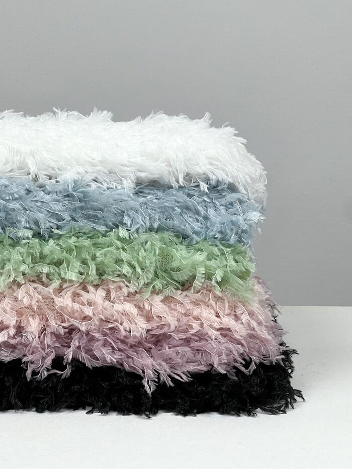 Вот такая ткань с имитацией перьев была куплена для юбки. Не, реально в разы проще работать, меньше аллергии и не облезет до состояния "щипаная цыпа".