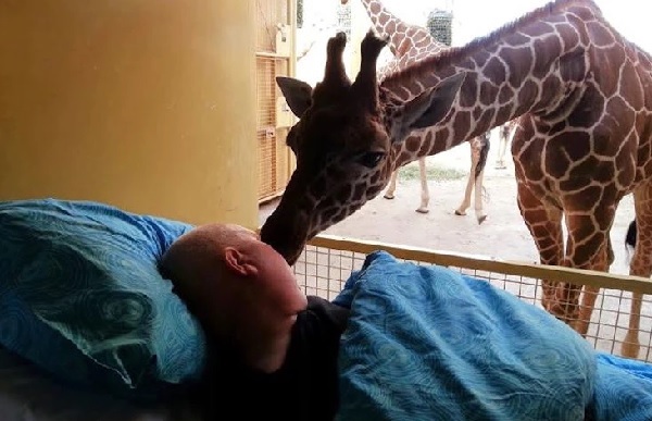У 54-летнего Марио перед смертью было одно желание: в последний раз проститься с любимым… жирафом. Дело в том, что более 25 лет этот мужчина работал в Роттердамском зоопарке. Он настолько любил своих подопечных животных, что частенько оставался ухаживать за ними даже после окончания рабочей смены. Его фаворитом среди обитателей зоопарка был жираф. Когда мужчине поставили диагноз «рак мозга», он вынужден был попрощаться с любимой работой. «Марио было уже так плохо, что он едва мог говорить, но от такого теплого приема его лицо прямо засветилось», — рассказывает один из свидетелей встречи. На фото ты видишь тот самый трогательный момент прощания с верным другом