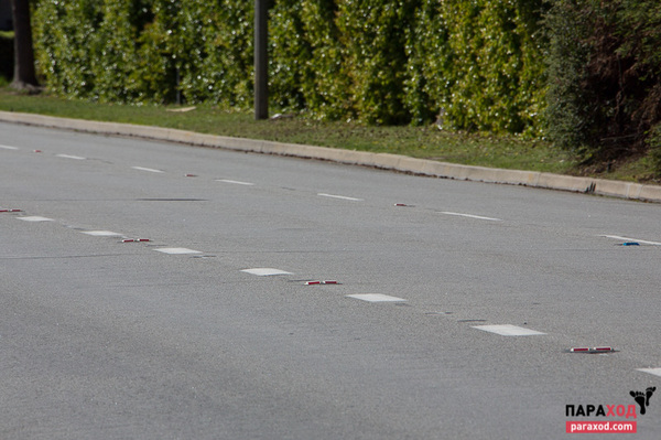 Ещё одним приятным сюрпризом стало наличие отражателей в самом дорожном полотне.