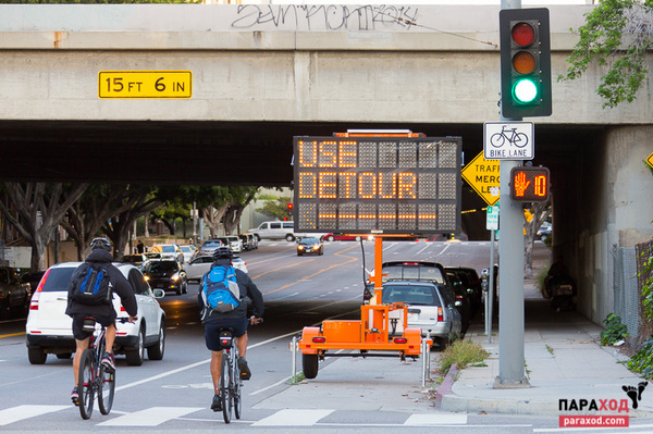 Городская улица с велодорожкой. Лос-Анджелес