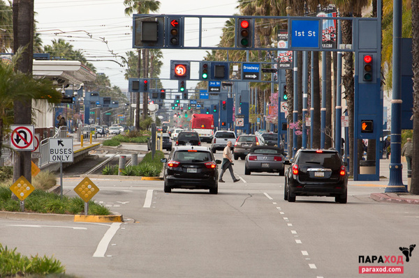 Обочины и поломка. В Нью-Йорке (штат) даже закон есть: увидел машину на обочине – перестраивайся из крайнего правого в левый ряд. Если что-то случилось, нужно вызывать соответствующую службу (911, эвакуатор), когда не удается оперативно устранить поломку самостоятельно. В Калифорнии даже рекомендуют не выходить из машины до приезда помощи. Если вас останавливает или подъезжает на помощь шериф или полицейский, то обычно останавливается сзади немного левее, обеспечивая дополнительную защиту. Машина у него при этом сверкает как новогодняя елка – такого количества спецсигналов на одной машине я не видел ни в одной стране.