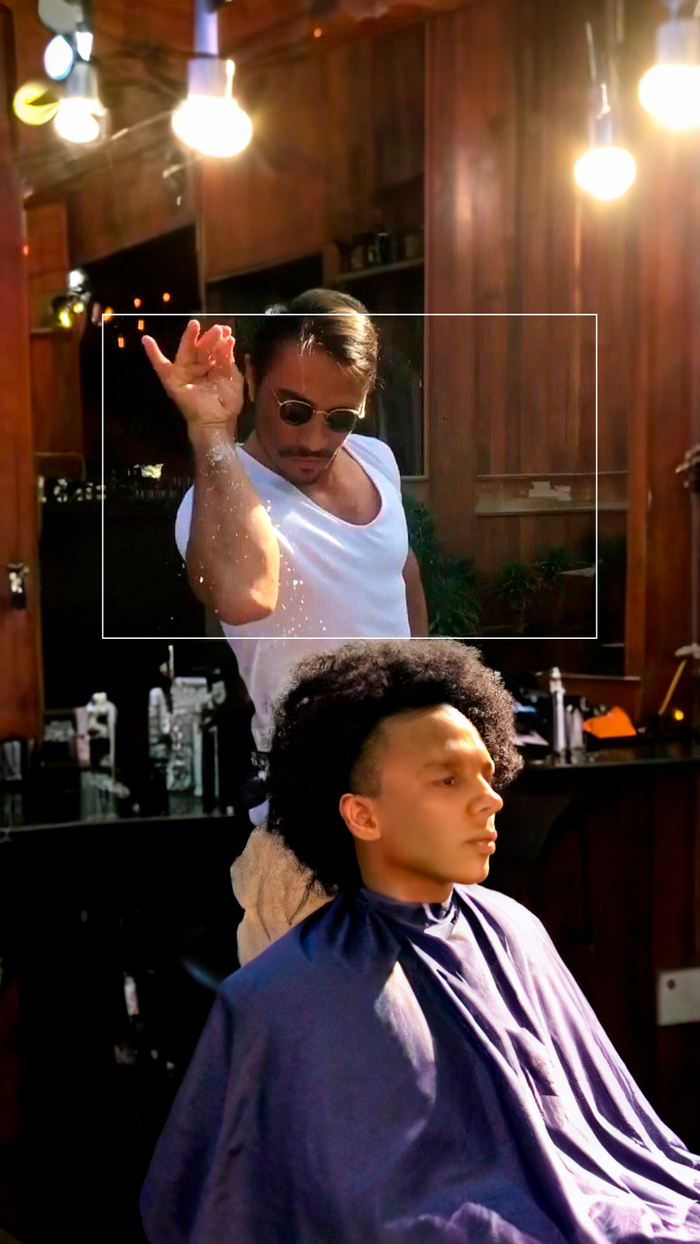 Первая часть. Для кадра с коробкой мы использовали оригинальную селфи палку, которая вставлялась в паз жесткой конструкции внутри коробки. Так мы добились кадра, когда камера притрекана к коробке. Саму селфи палку камера умеет вычитать и затирать на видео. Ну и дополнительные артефакты я заклинапил на посте.
