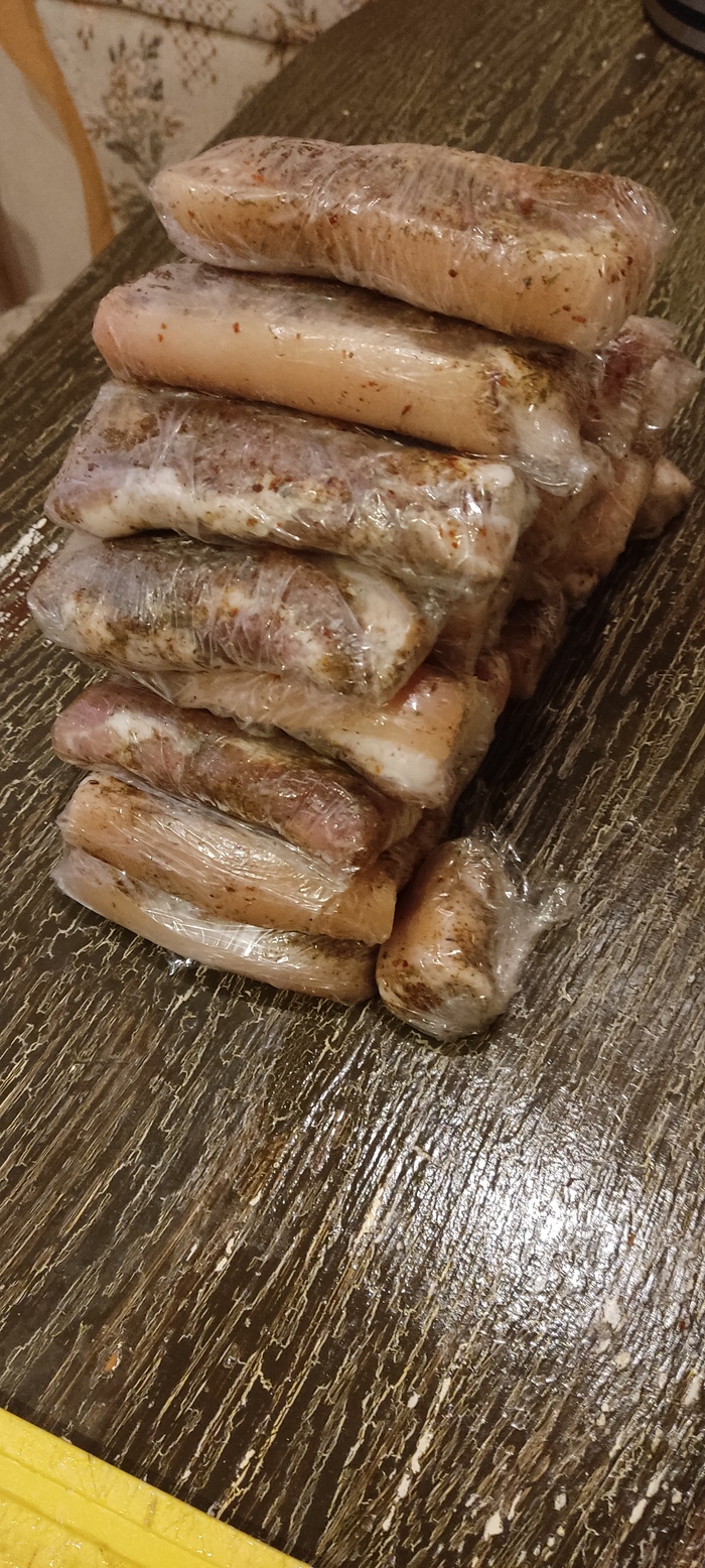 PS. Бонусом в этом же маринаде я мариную мясо, можно после сала, можно вместе с салом. Куски должны быть тоже не толстые.Тоже обсыпаю приправой, закручиваю в марлю, вешаю над мойкой на часик, потом к сквозняку поближе на один день чтоб обсохло, и в сухое место на дня три. К пиву просто объедение.