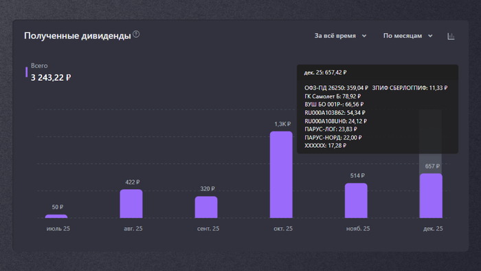 Мой пассивный доход. 657 рублей за декабрь
