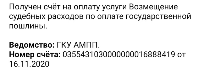 🤔 меня это ,мягко говоря, удивило, т.к. никаких судебных разбирательств с этими товарищами я не имел, а с выставлением счета на оплату судебных расходов, без судебного решения, да еще и в виде штрафа, так вообще какой-то нонсенс.