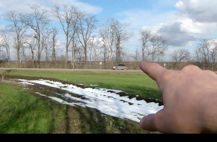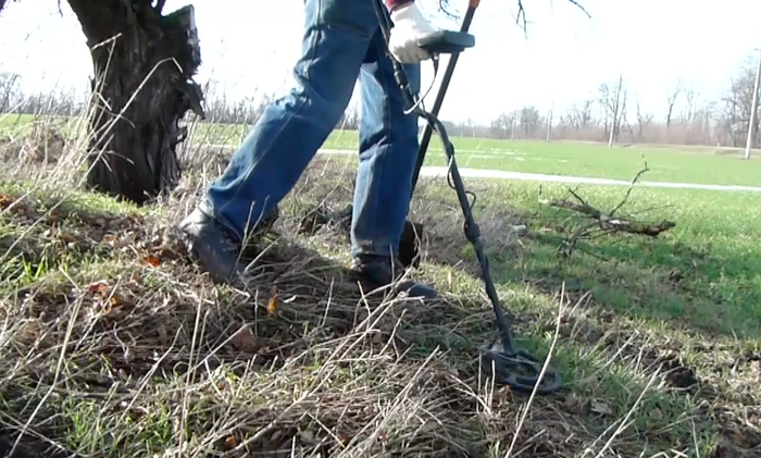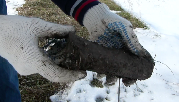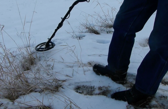 Рядом с полем есть места где много снега, но в основном он уже растаял. А вот и первый сигнал, хоть и мелкий но решил откопать.