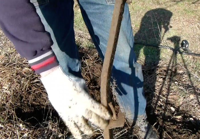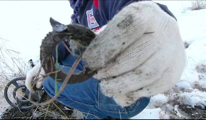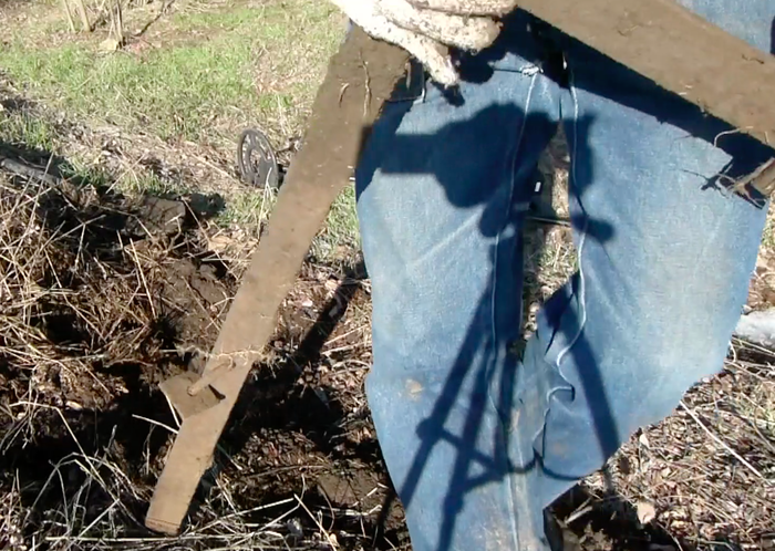 Второй сигнал получше- лопата стукнулась о что то твердое- кусочек трубы.