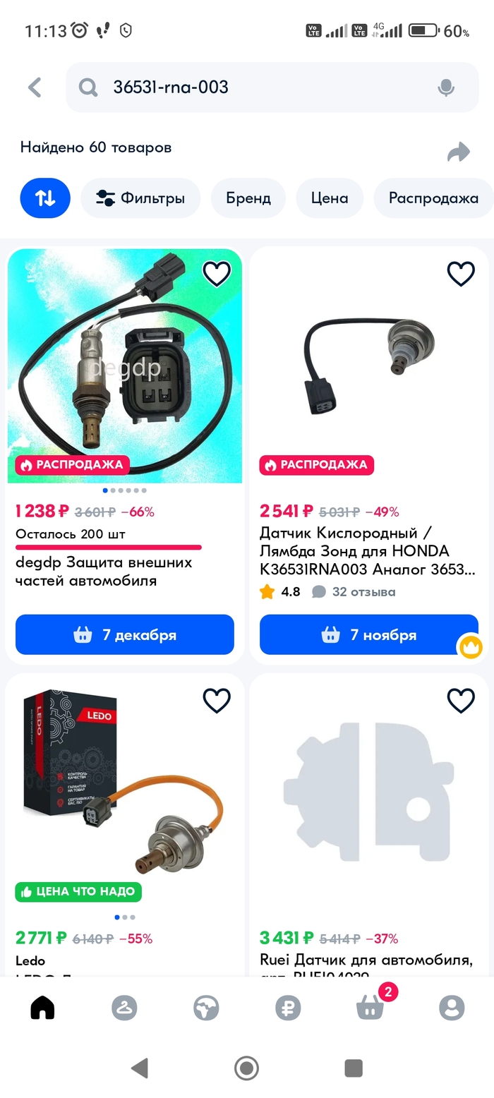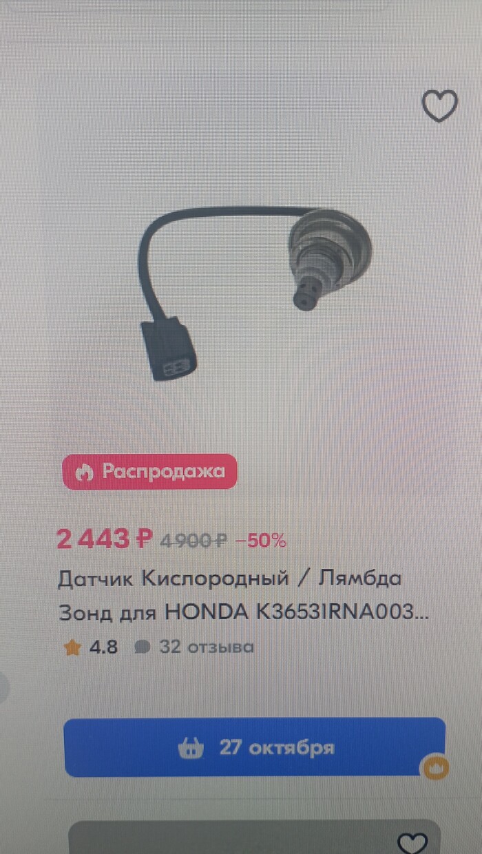 Искал кислородный датчик в приложении на телефоне. Нашел - цена 2541 рубль, доставка 7 ноября.