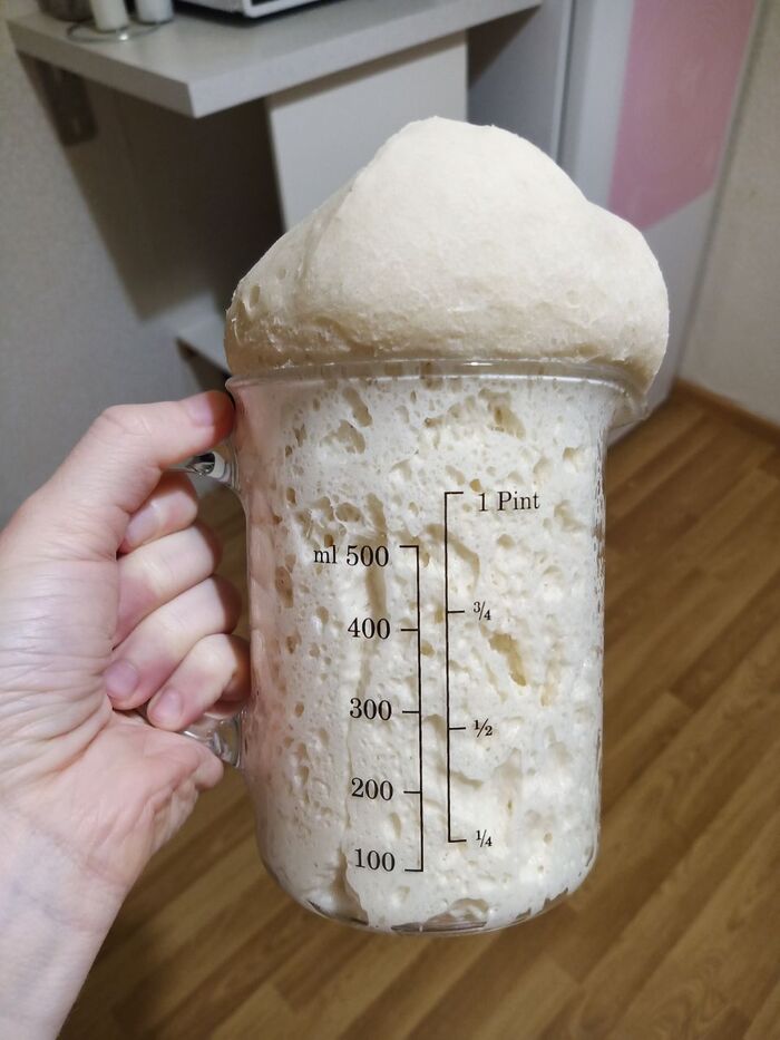 С этого момента её нужно обновлять по принципу 100% закваски/100% мука/50% вода.