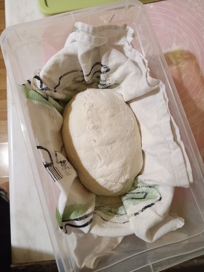 Сформированное тесто кладу в контейнер, закрываю и убираю в холодильник на 12 часов