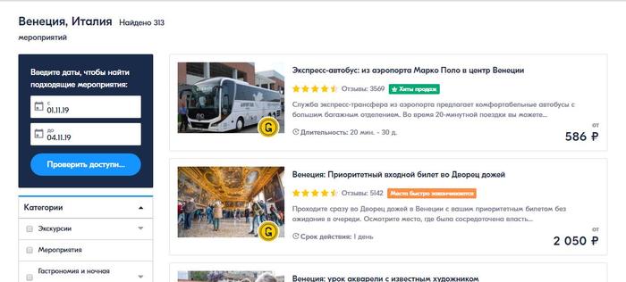 Воспользуйтесь сайтом https://www.getyourguide.ru для поиска мероприятий либо трансферов по Европе.