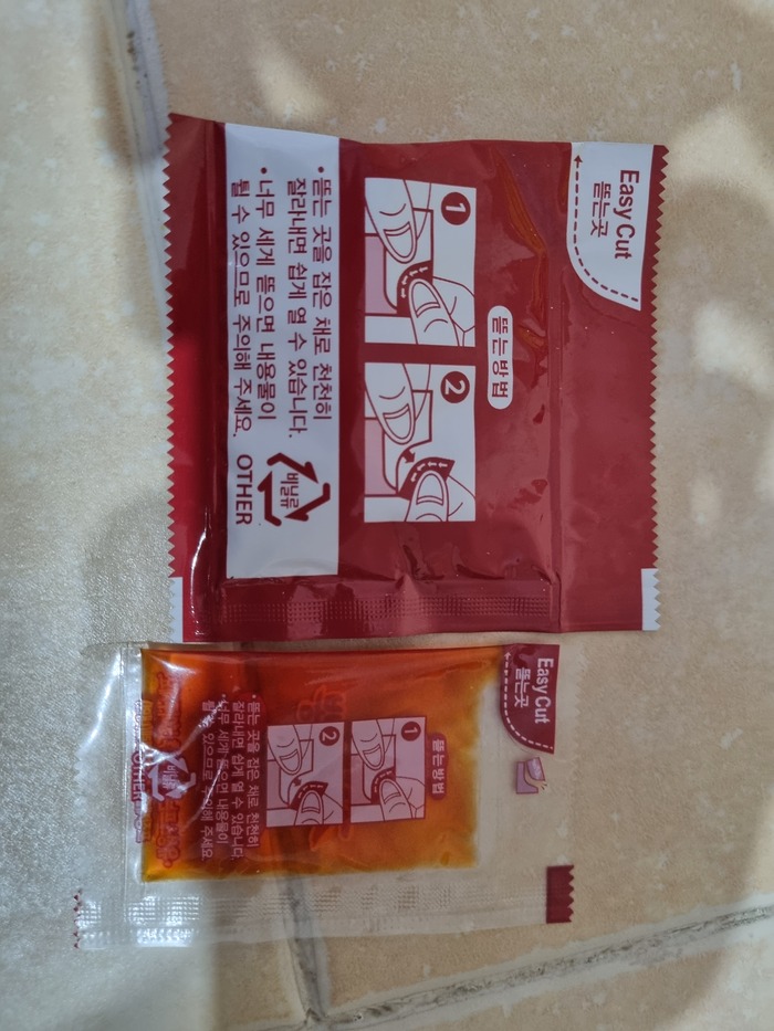 При вскрытии распространяется довольно приятный запах морепродуктов, сам соус не острый, пряный в меру и немного сладковатый.