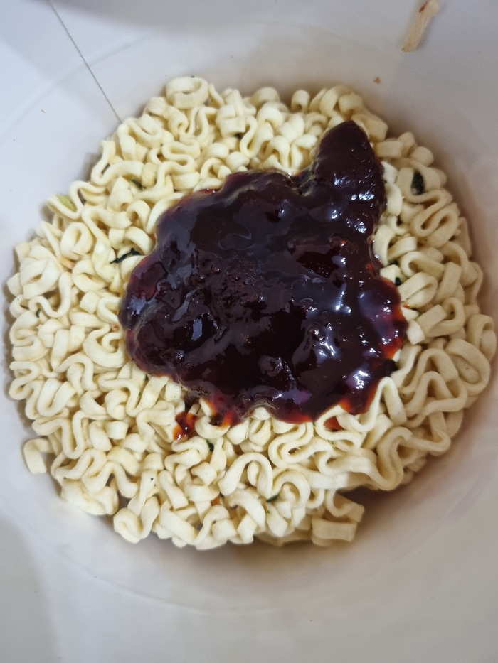 Ну собственно говоря как это выглядит после приготовления. Лапша упругая, приобретает вкус острого масла и соуса. Жене на вкус показалась острой, но ей и халапеньо жжёт, а я ем его спокойно. Так как я не эксперт-дошираколог, по балльной системе оценивать не буду, сравнивать особо не с чем. Всем приятных открытий восточной кухни. Стоит эта лапша 120 рублей примерно. Точно не помню, брал не только её.