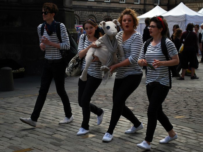 На это мероприятие съезжается столько театральных групп, что ежедневно приходится себя рекламировать, устраивать перформансы. Выглядит это примерно так: