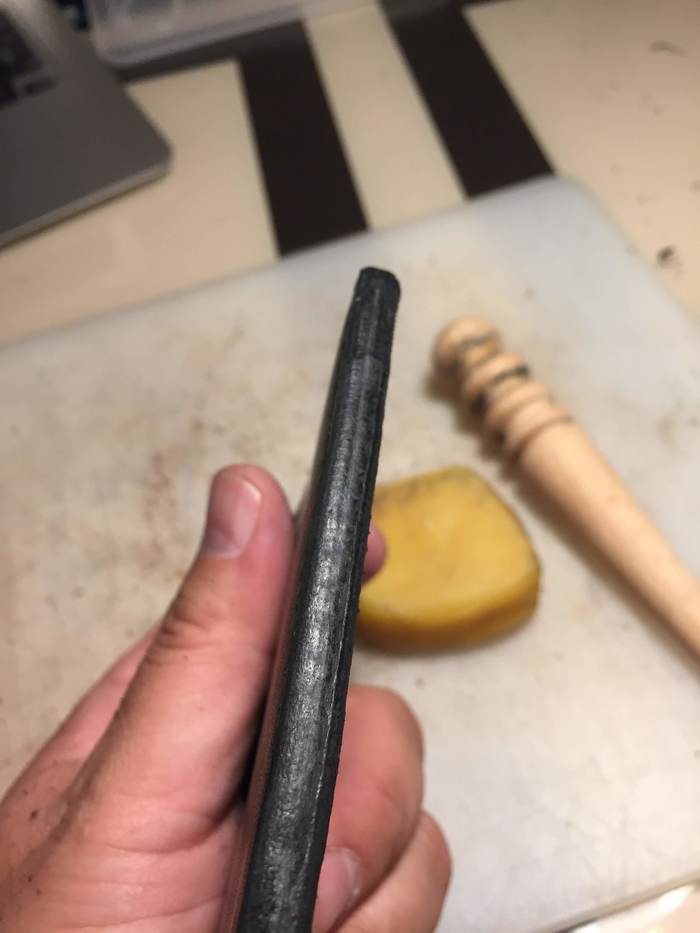 Скругляем углы. Тут не хватает линейки с круглыми шаблонами. Углы под десятый номер.