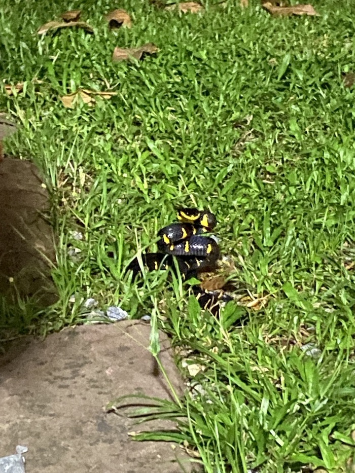 К счастью, змея оказалось не самой ядовитой (а в наших краях есть такие змеи, противоядия от которых нет), а именно золотая манговая змея, длиной около 1,2 метра.