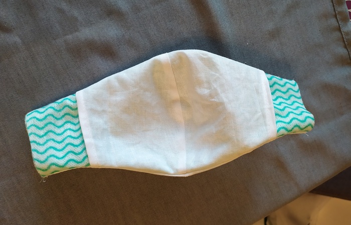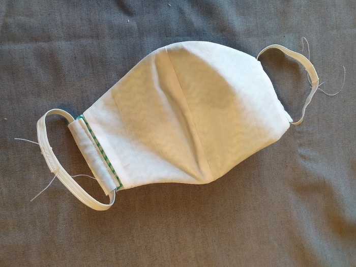 12. Заправляем закрепки под припуск, проглаживаем ее утюгом и маска готова!