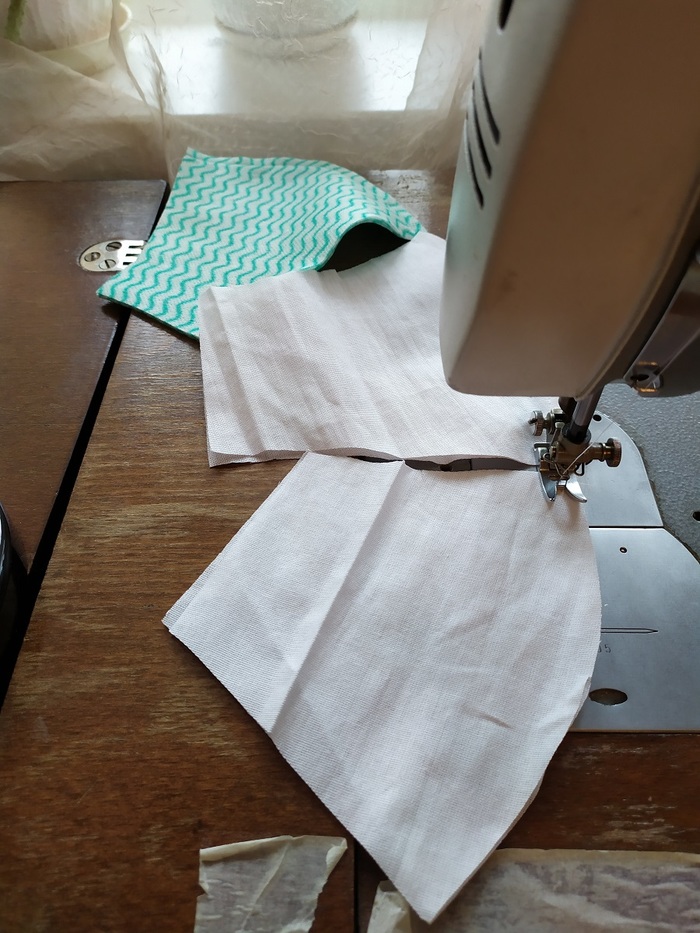 1. Сшиваем детали маски по среднему шву, каждый слой отдельно.