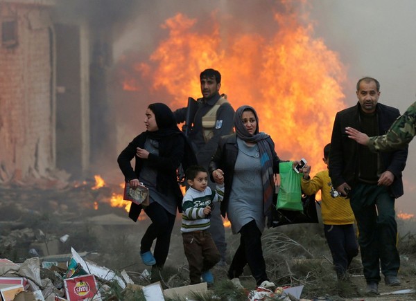 Люди покидают место взрыва в Кабуле, Афганистан, 13 марта 2017 года.