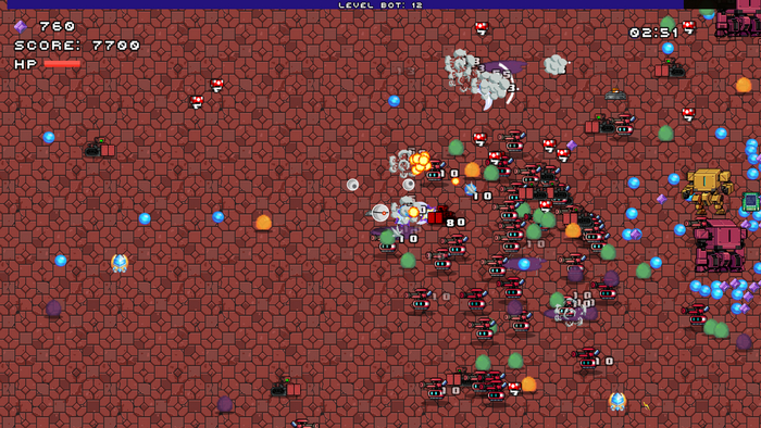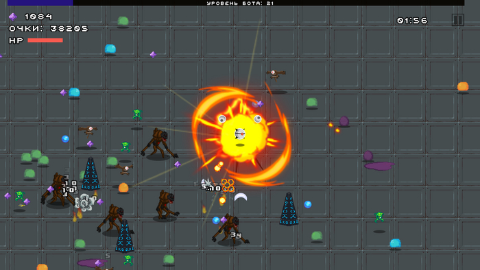 - теперь появляются усиленные враги. Больше размер и больше хп, также из них выпадает доп орудие (пока это метеор, парящий кристалл, шок волна, звездная пыль);