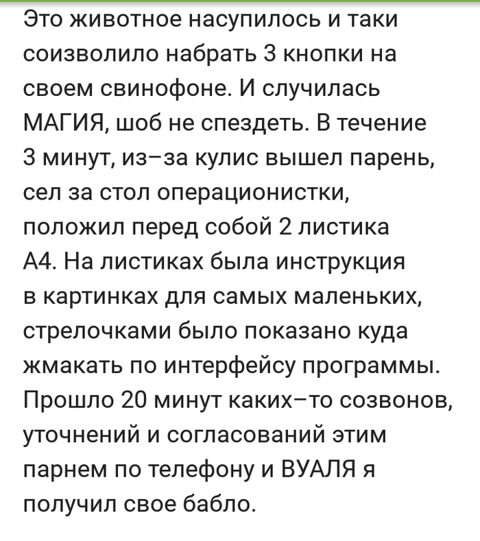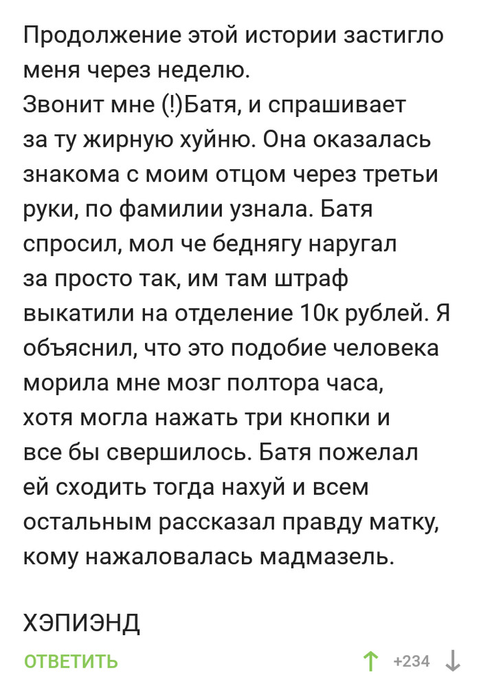 Директор тут же переводит покупателю разницу в деньгах, вкратце описав почему так произошло. Клиент довольный, тут же редактирует отзыв на положительный. Вечером общее собрание, директор начал издалека, как бы вы отнеслись если бы вашу репутацию портили? Если бы у вас за спиной проворачивали делишки? Народ не скупился на выражения и негодовал. Начальник отдела продаж не выдержал и со слезами начал приводить какие то идиотские аргументы, что не хватало на путевку, что он женится хотел, предложение сделать и все в таком духе. Естественно он тут же был с позором уволен...