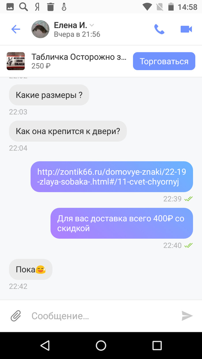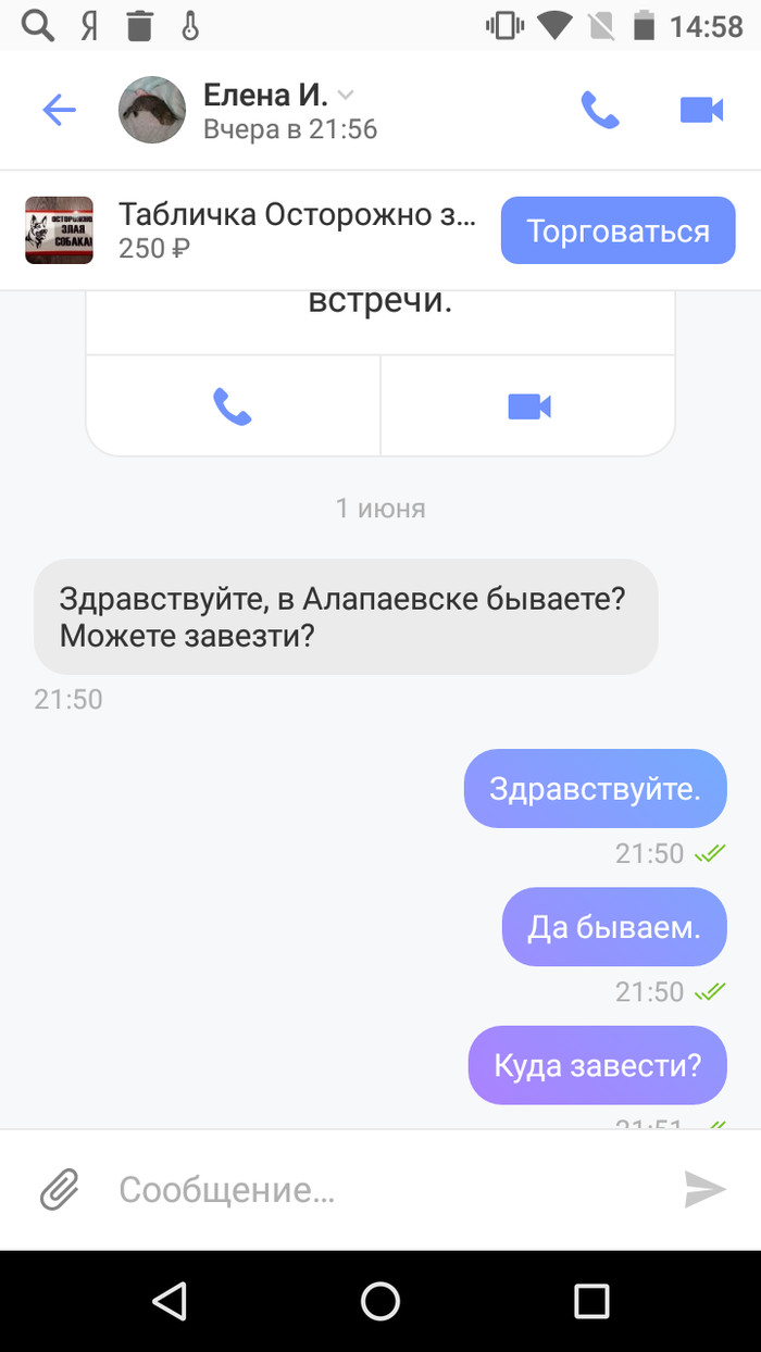 1. Муж занимается в свободное от работы время, изготовлением сувенирной и рекламной продукции. Я у себя на юле выложила на продажу табличку "Осторожно злая собака". Вчера вечером, что за дурная привычка писать после 22.00. Есть индивидуумы которые и в час ночи не чураются написать или позвонить. Сами живем в поселке, до ближайшего города примерно 15 км. Услуги Такси примерно от 400 рублей в одну только сторону. Это к слову о ситуации ниже.