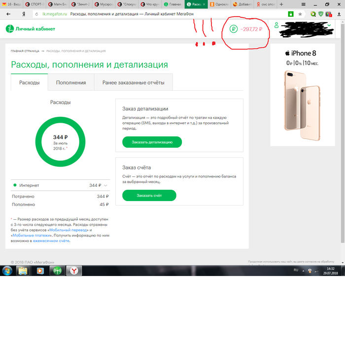 В плеймаркете я не нашёл никаких обновлений, поэтому попробовал заказать детализацию через комп. Но так как номер в минусе, мне не приходили коды подтверждения. Я решил закинуть 45 р., чтобы выйти в плюс и получил вот это: