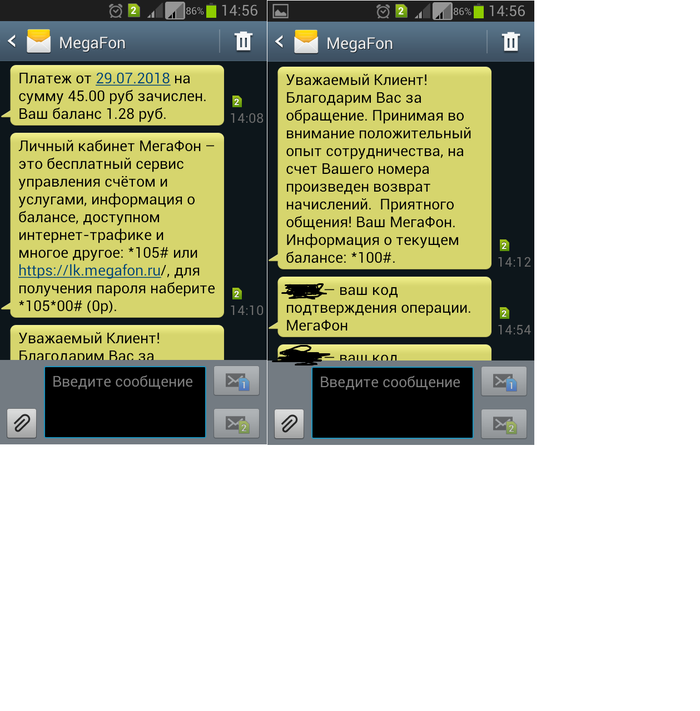 Ну и на напоследок мегафоновские тролли прислали мне пару сообщений: