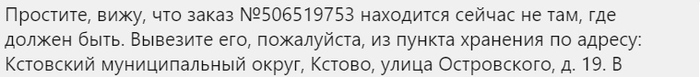 К слову, СЦ находится в 180 км от пункта, где мне должны были выдать возврат. Мой путь до невостребованного заказа внезапно увеличился на 360 км. Вежливо отказываюсь от такого предложения, на что получаю бесячий шаблонный ответ, который сотрудники ТП не постесняются применить еще сто мульонов раз.