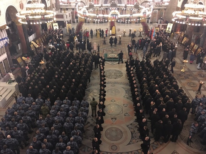 В Кронштадтского Морском Соборе сегодня состоялся праздничный молебен. Присутствовали кадеты КМКВК, моряки Лен ВМБ и бойцы Росгвардии из 33 -й бригады оперативного назначения, всего около тысячи человек.