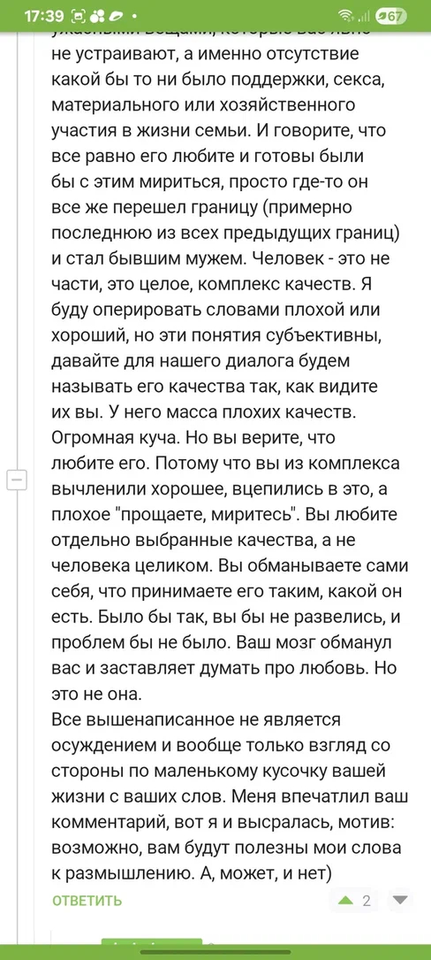 Прежде всего, мне пришлось долго уговаривать себя разрешить думать себе о семье. Опять. Потому что разводишься ты с мыслью: «да ну нахуй, больше никакой семьи. Это пиздец какой-то». (Твердое решение, на секундочку. Вы что думаете, я 4 года терпела? Брак — это ценность, мне охуеть как сложно было принять это решение).