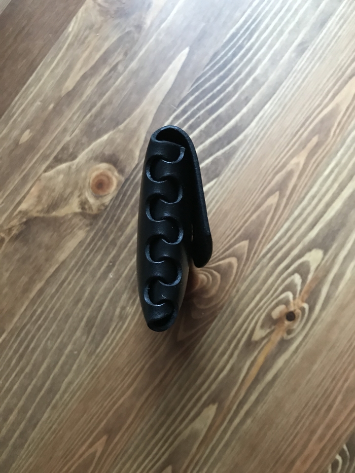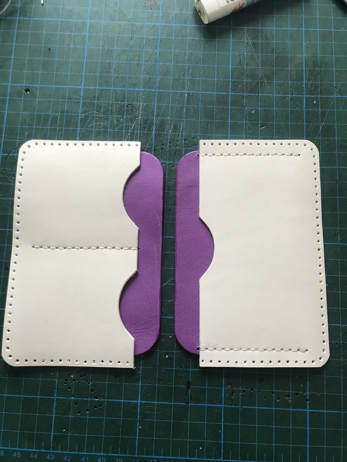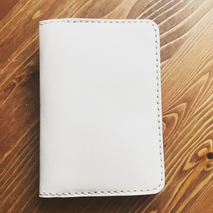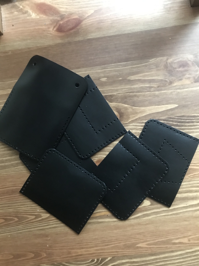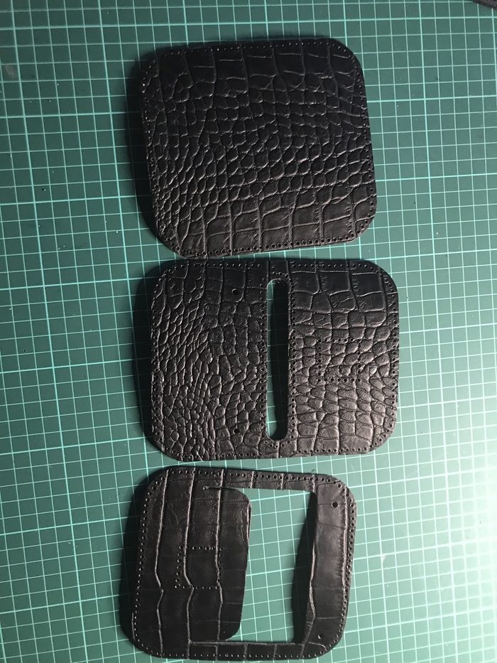 Прилетел с одного сайта с частными объявлениями небольшой заказик. Клиентка захотела вот такой небольшой кошелёк. Кожа КРС с тиснением под кроко растительного дубления. Один отдел под карты и один под мелочь
