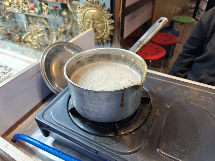 Мы взяли по паре кружек масала чая по 200 рупий за стакан. Тут есть ларек с чаем, ценник сносный для такого места, подниматься сюда со своим термосом вроде как запрещено, но никто не проверяет особо.