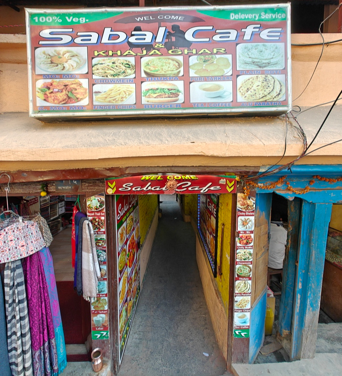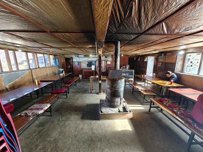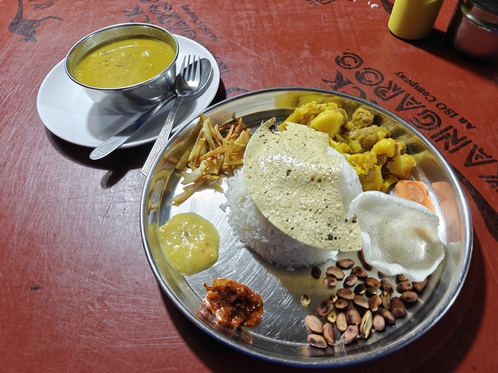 Но голод дает о себе знать, а поэтому сначала нужно пообедать! Заказали два дал-бата и чай. Сам лодж находится в тени и внутри было довольно холодно, немного подмерзли, пока ждали обед.
